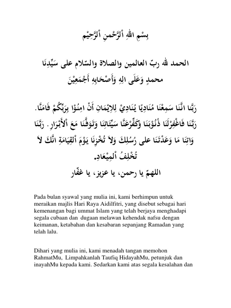 May 25 2020 Assalamualaikum dan Selamat sejahtera Hari Raya Aidilfitri adalah sambutan perayaan bagi umat Islam seluruh. 1 Bacaan Doa Majlis Dalam Bahasa Melayu. Portal Rasmi Pdt Petaling Teks.